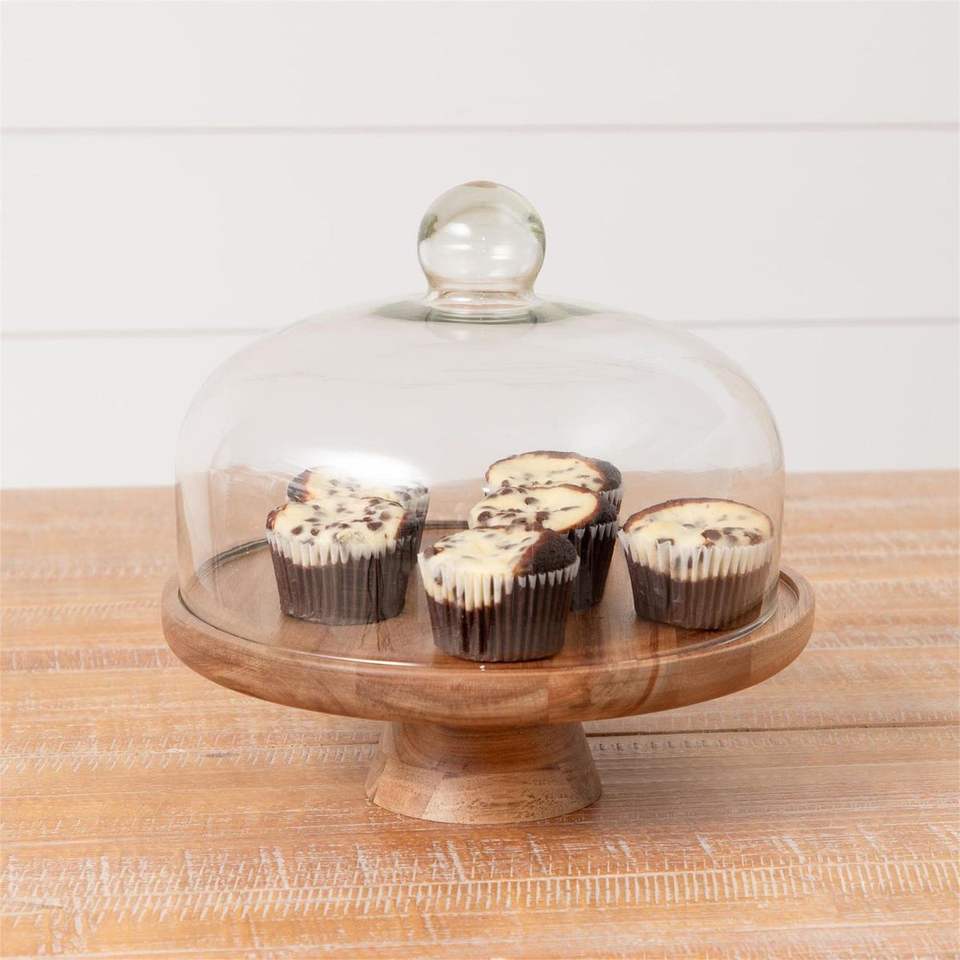 แท่นวางเค้กไม้พร้อมฝาแก้ว