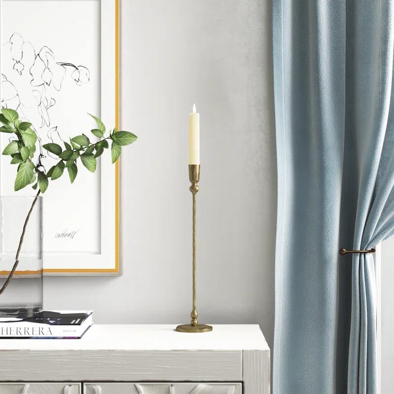 เชิงเทียนฐานทองคำทรงหกเหลี่ยมที่ไม่เหมือนใครเชิงเทียนโลหะสูงและเรียว