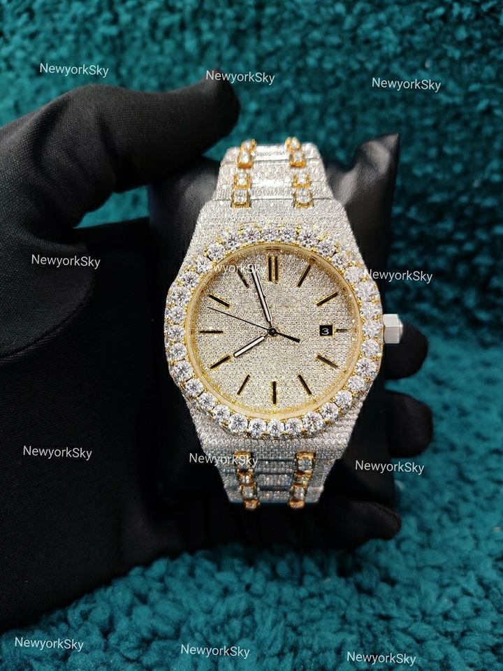 นาฬิกาผู้ชายสไตล์ฮิปฮอปเพชรประดับเพชร VVS Moissanite สำหรับผู้ชายราคาถูก
