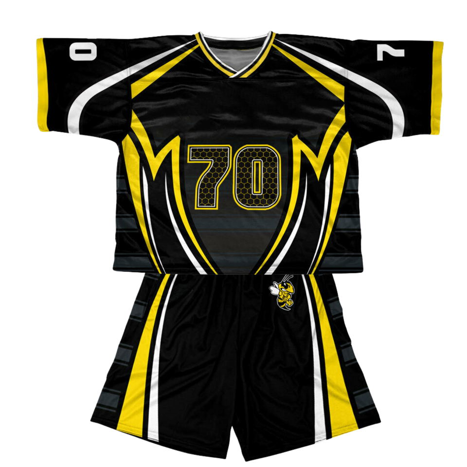 ชุดลาครอสลายรังผึ้งแบบพิเศษ สีดำเหลือง แบบซับลิเมชั่น เสื้อและกางเกงขาสั้น ระบายอากาศได้ดี สำหรับทีม