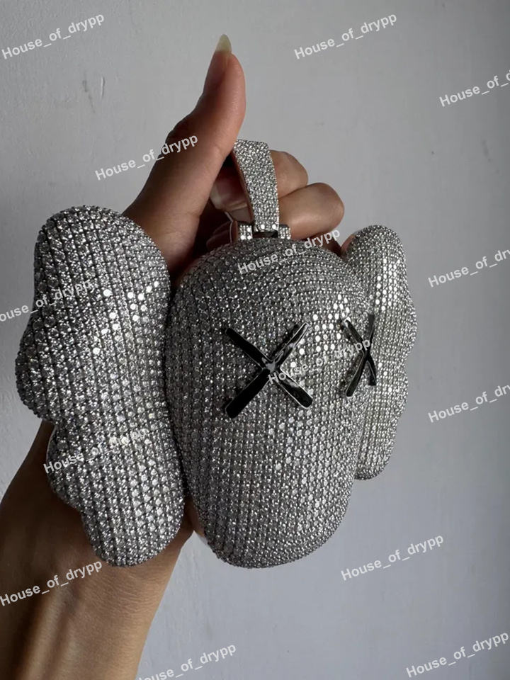 จี้รูปหน้าคนแบบ Iced Out ดีไซน์เฉพาะตัว ประดับเพชร VVS Moissanite ชุบโรเดียม แหวนเงินแท้ 925 สไตล์คลาสสิก จี้หรูหราโดดเด่น