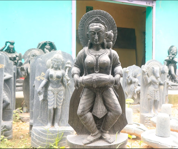 รูปปั้นหินสีดำทางศาสนาที่ไม่เหมือนใครของอินเดียเต้นรำรูปเคารพเคารพเคารพเคารพเคารพสักการะและจัดแสดง