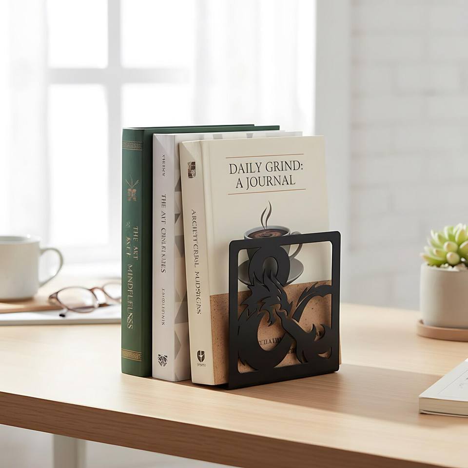 ที่คั่นหนังสือเหล็กสีดำแบบดั้งเดิมที่มีเอกลักษณ์เฉพาะตัวสำหรับการจัดเก็บหนังสือเพื่อการตกแต่ง เพิ่มความโดดเด่นให้กับชั้นวางด้วยรูปทรงโลหะที่เป็นเอกลักษณ์