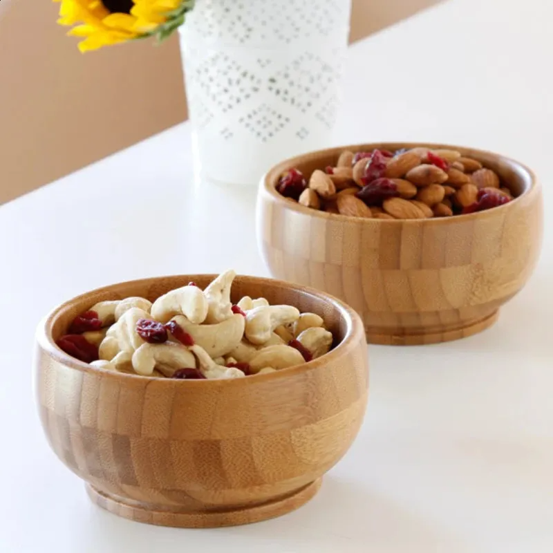 ชื่อ:ชามไม้ไผ่ธรรมชาติทรงกลมสไตล์ญี่ปุ่นที่มีเอกลักษณ์ขนาด: D4 3 x H2 4นิ้ว