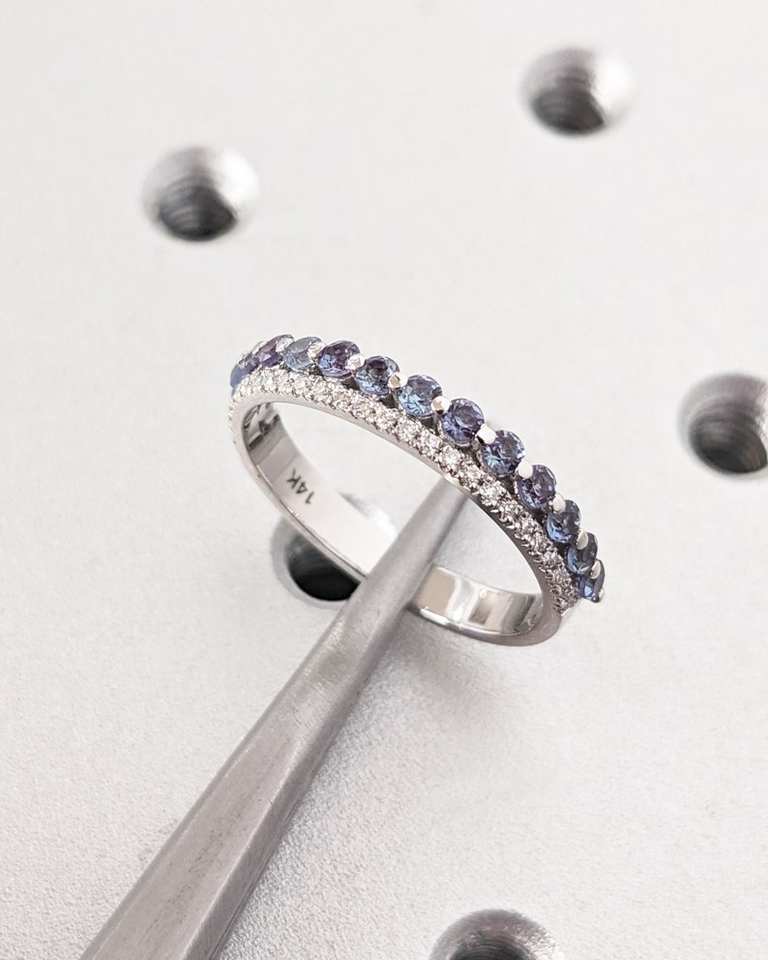 อเล็กซานไดรต์สำหรับงานแต่งงานวงแหวนเพชรสีขาวทอง18K หนาไม่เหมือนใครใช้ในห้องทดลอง