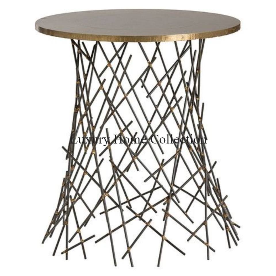 โต๊ะเหล็กทรงกลมทำด้วยมือทำจากโลหะพร้อมด้านบนทำจากไม้และโครงเหล็กสีดำของตกแต่งบ้านดีไซน์ล่าสุดไม่เหมือนใคร
