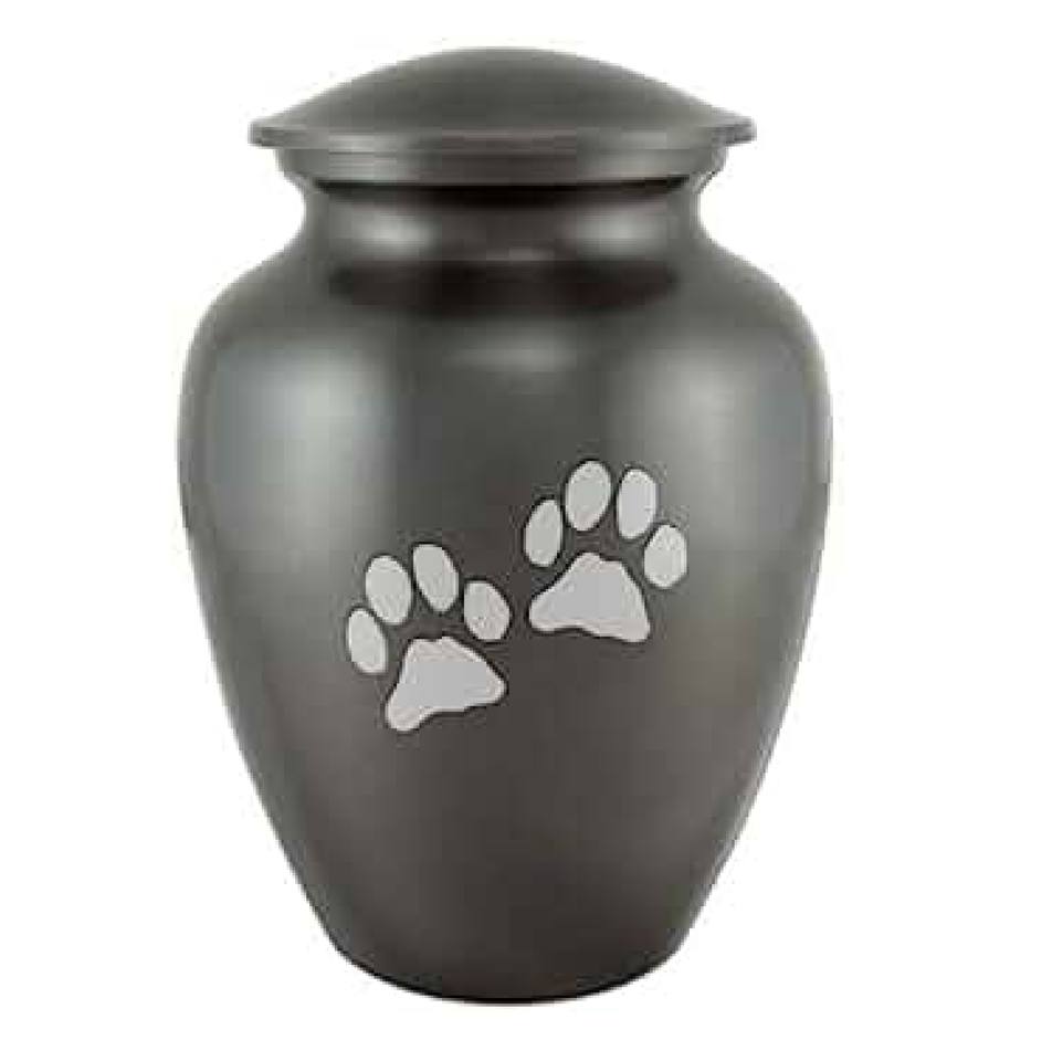 Unique Look Brass Cremation Urns With Beautiful Paw Print Design and Grey Color Finished Made in India