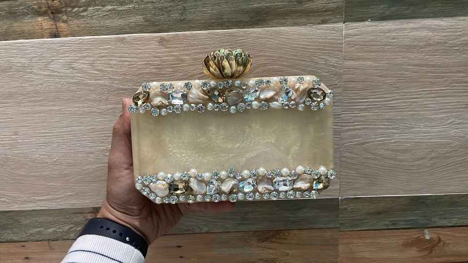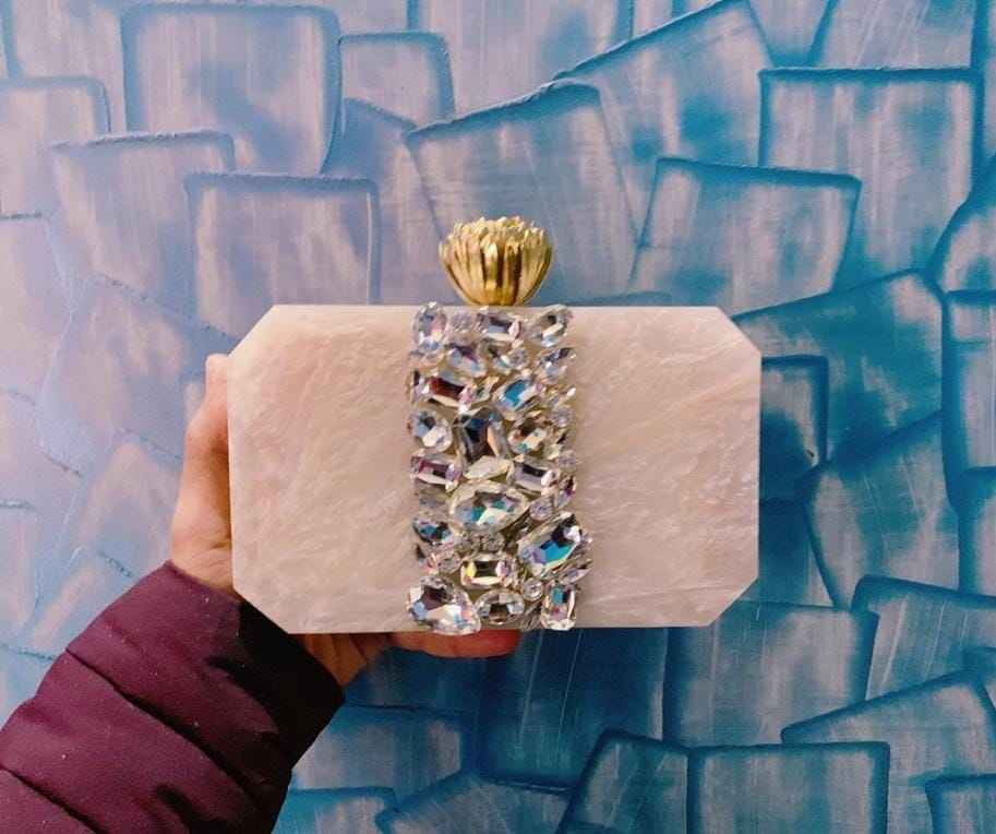 กระเป๋าถือผู้หญิงสไตล์วินเทจประดับคริสตัลสีขาวเรซิ่น ดีไซน์โดดเด่น สำหรับงานแต่งงาน งานเลี้ยงฉลองครบรอบ คุณภาพสูง เหมาะสำหรับงานกลางคืน