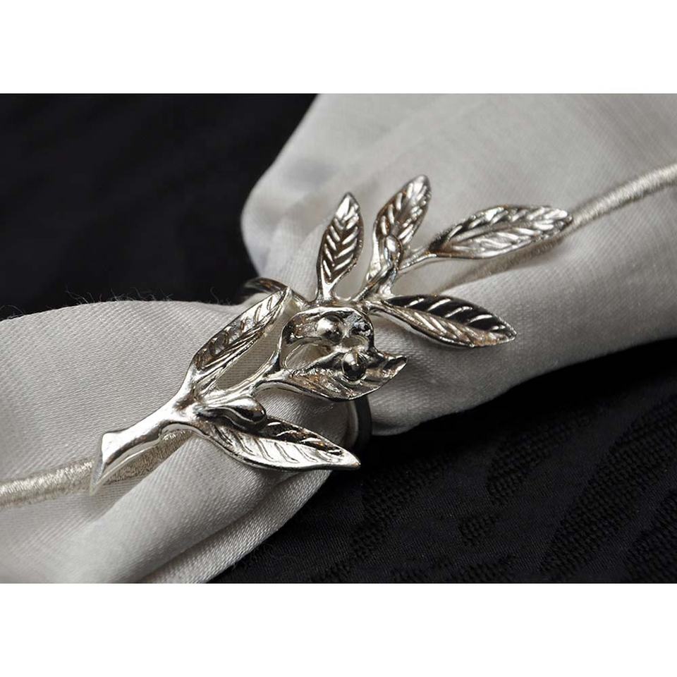 ที่ไม่ซ้ำกันโลหะนูนดอกไม้และใบการออกแบบที่สง่างามตกแต่งแหวนผ้าเช็ดปากที่มีคุณภาพสูงพระราชแหวนผ้าเช็ดปากเงิน