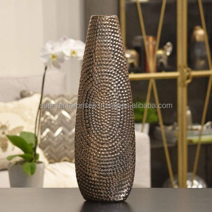 แจกันดอกไม้โลหะดีไซน์โดดเด่นสำหรับตกแต่งบ้านและสำนักงาน พร้อมรูปทรงที่เป็นเอกลักษณ์และงานตกแต่งโลหะที่มีศิลปะ