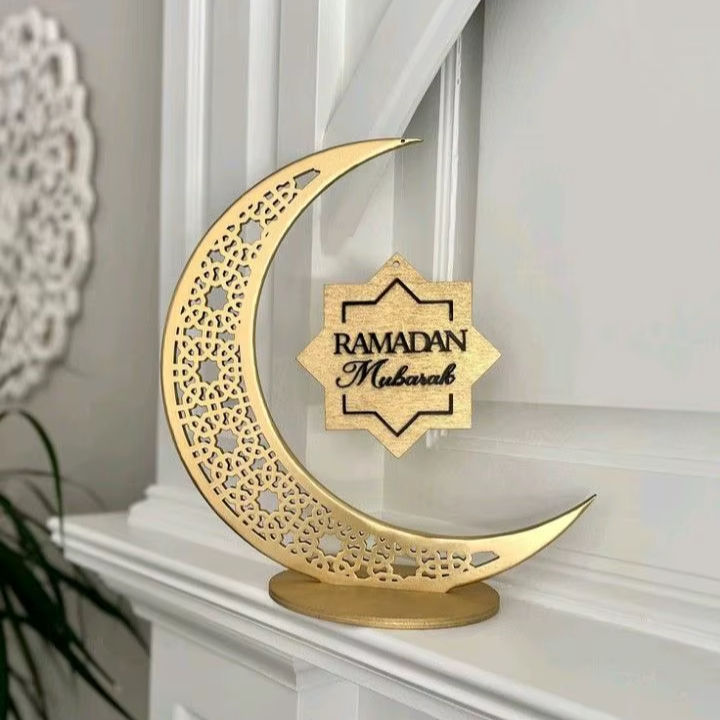 ของตกแต่งรอมฎอนทำจากโลหะที่ไม่เหมือนใครตรงกลางพร้อมรูปพระจันทร์เสี้ยวเหมาะสำหรับการตกแต่งบ้านแบบอิสลามและบรรยากาศรื่นเริง