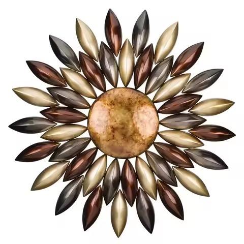 การตกแต่งผนังโลหะที่ไม่เหมือนใครด้วยดีไซน์รูปทรงเรขาคณิตและดอกไม้สำหรับการแขวนตกแต่งบ้านที่ทันสมัย