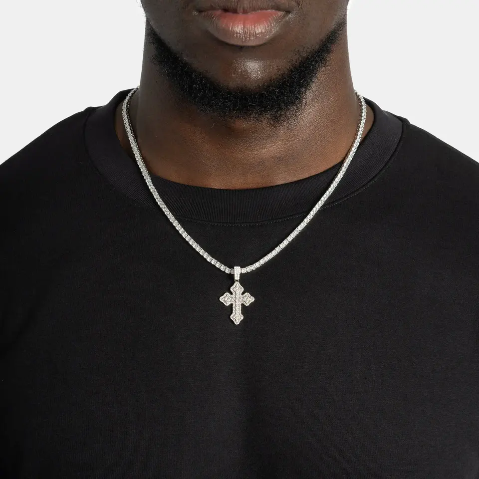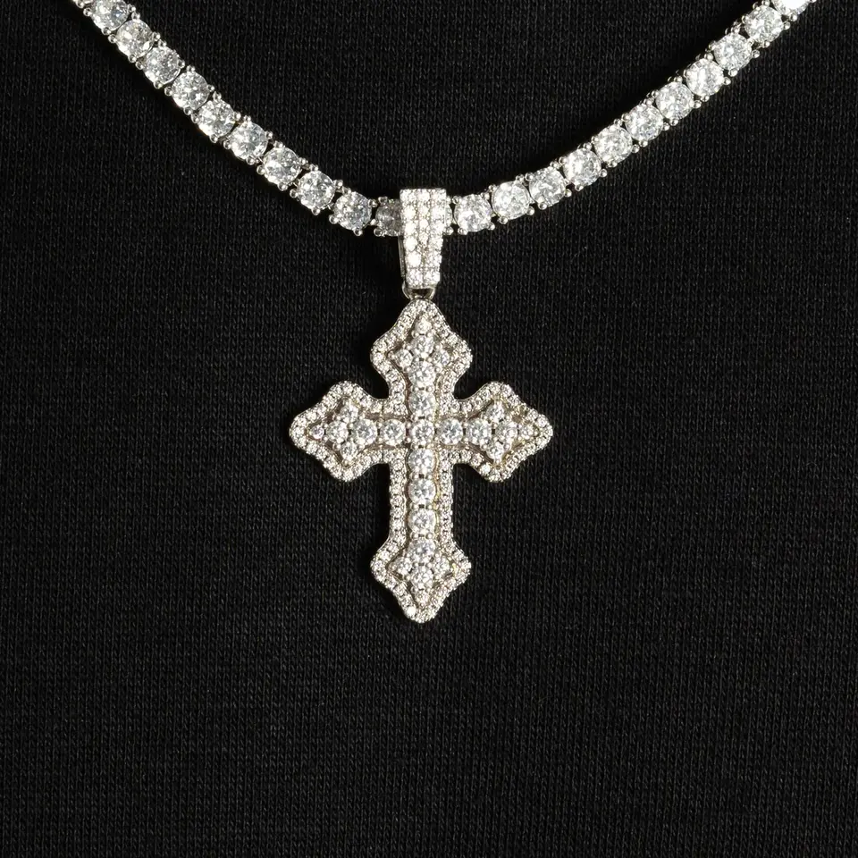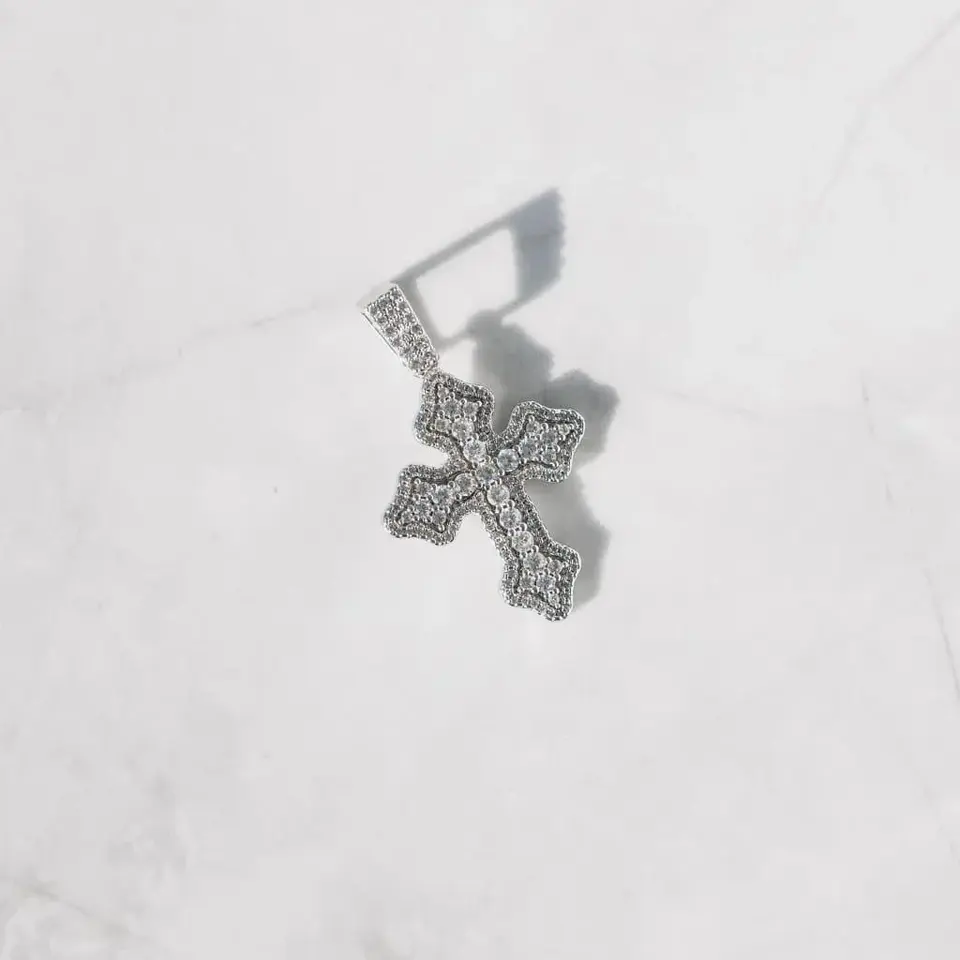 จี้ไมโครคลัสเตอร์ทรงไขว้แบบไม่ซ้ำใคร ประดับด้วยมอสซาไนต์ทรงกลมสุดเก๋ เพื่อเพิ่มความโดดเด่นให้กับเครื่องประดับ