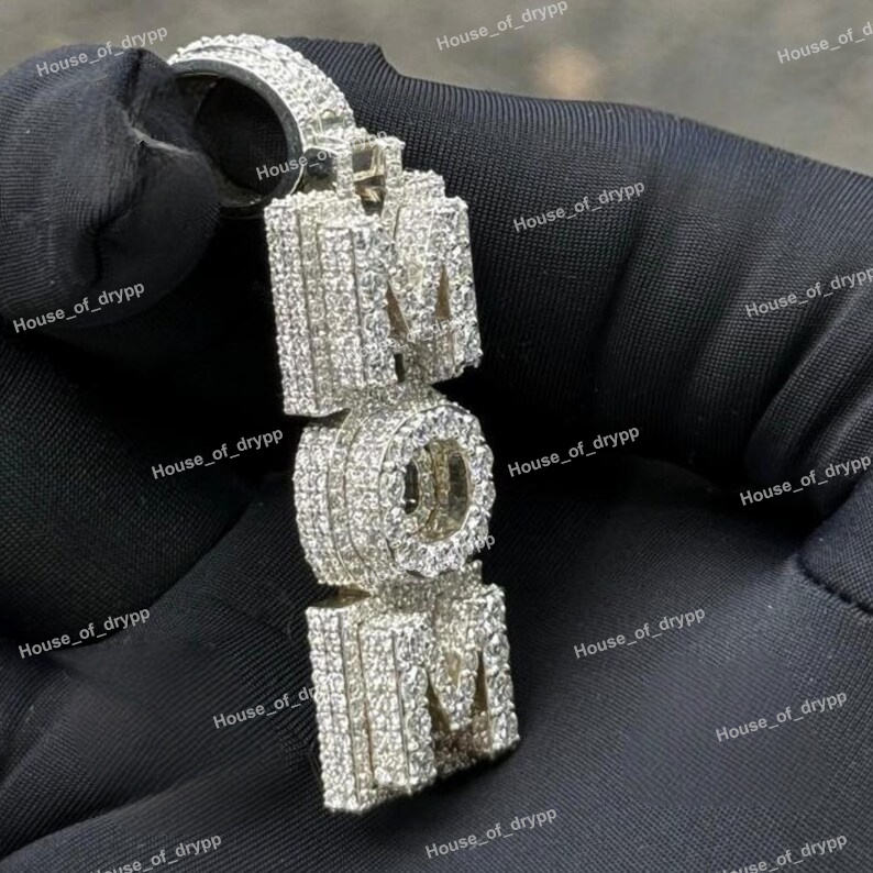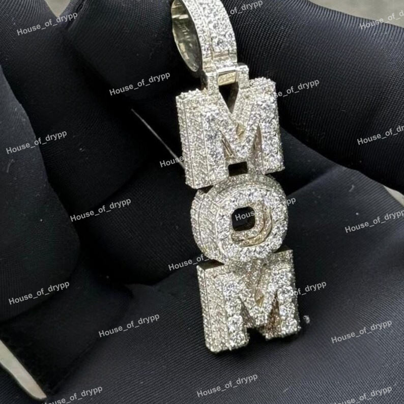 จี้เพชรโมอิสซาไนต์ประดับตัวอักษร MOM บนตัวเรือนเงินแท้ 925 สไตล์ฮิปฮอปสุดหรู