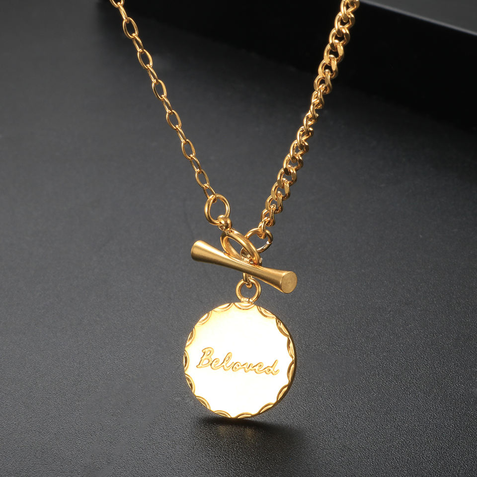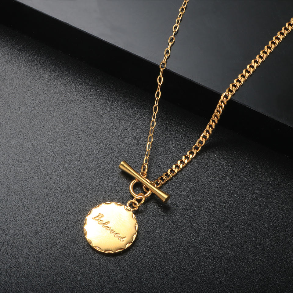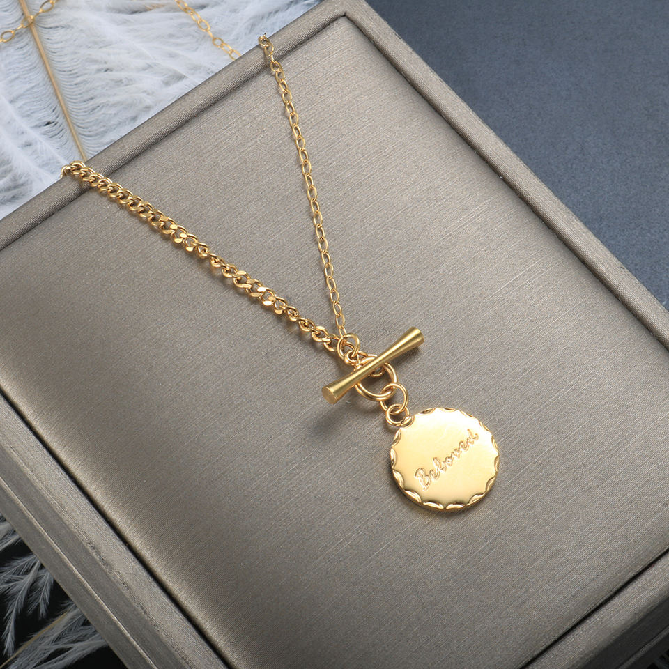 สร้อยคอทองคำแท้ K18เคลือบ PVD เสน่ห์อันเป็นที่รักเครื่องประดับสร้อยคอทองคำออกแบบเข็มกลัด OT