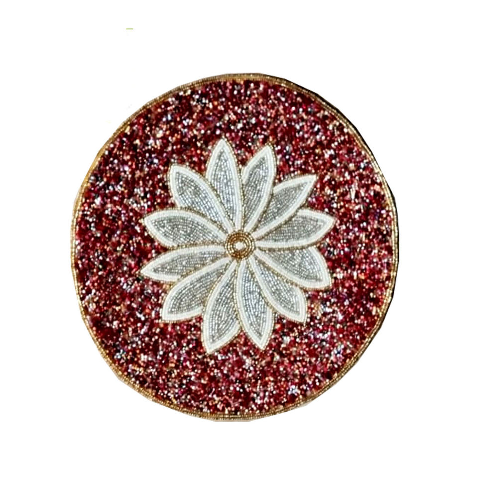 แผ่นรองจานลายวงรีที่ไม่เหมือนใครแผ่นรองถ้วยพร้อมลูกปัดแก้วแผ่นตกแต่งโต๊ะอาหาร