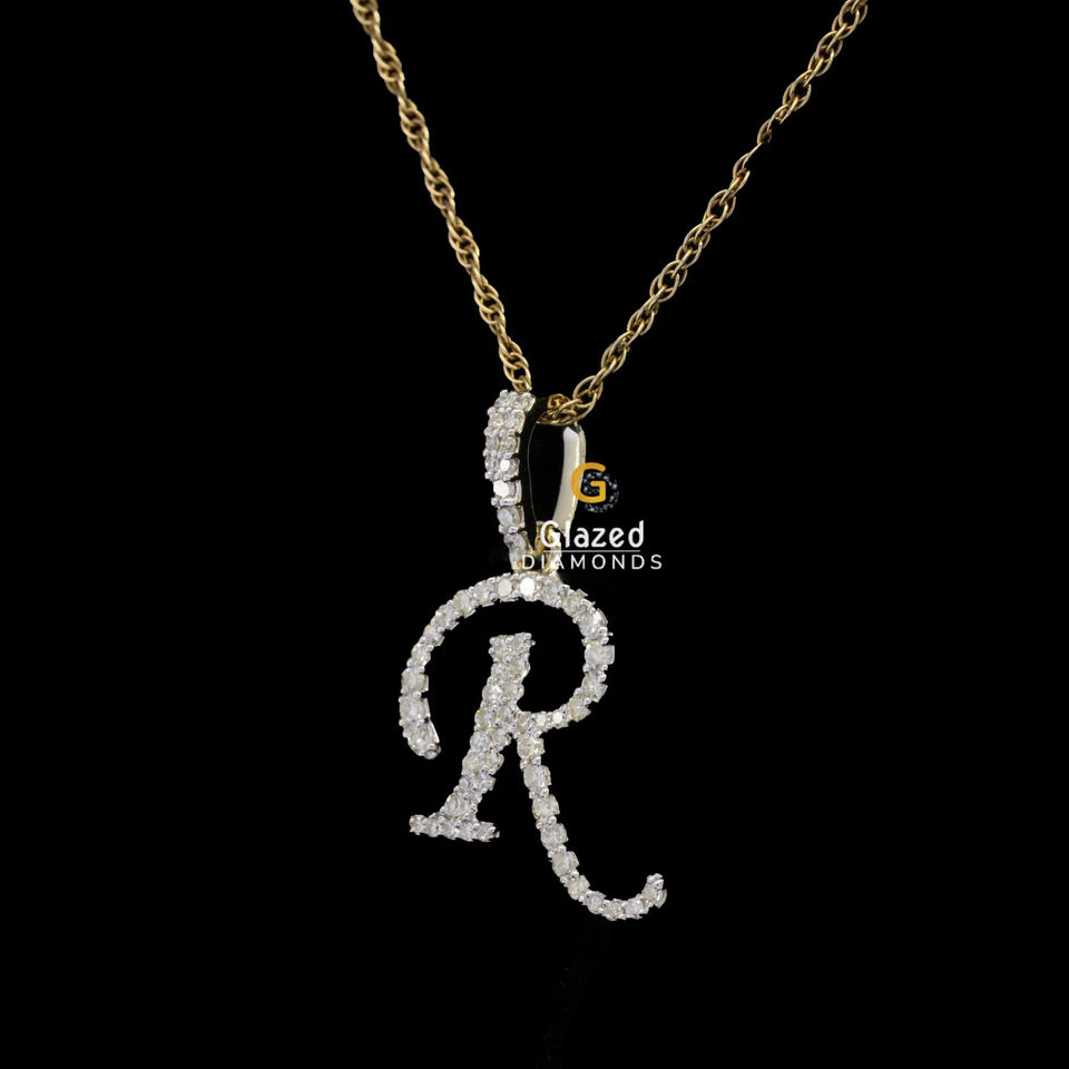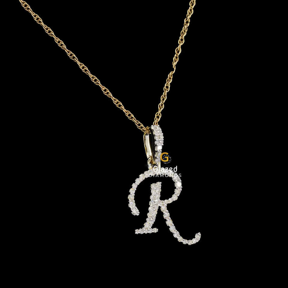10Kt ฮิปฮอปที่ไม่ซ้ำใครใส่ในงานปาร์ตี้ที่ไม่เหมือนใครตัวอักษรสีทองสีเหลืองตัวอักษรที่กำหนดเอง R จี้เริ่มต้นทำจากน้ำแข็งด้วยแล็บปลูกทรงกลม VVS เพชร