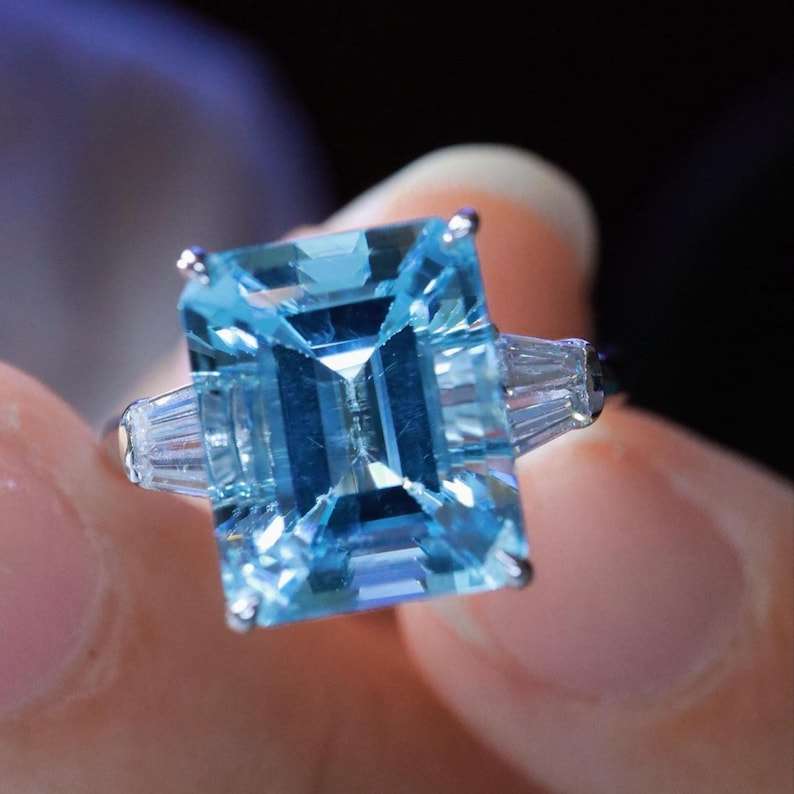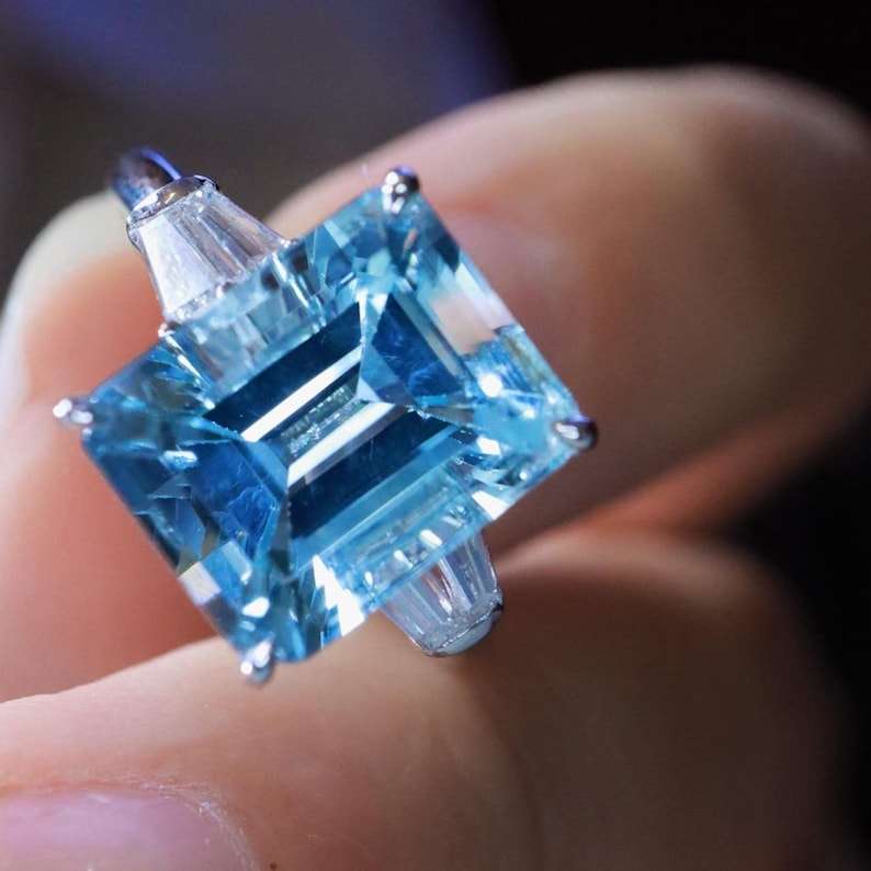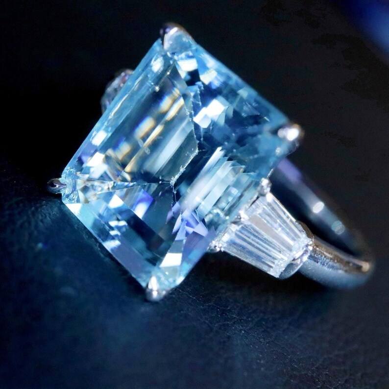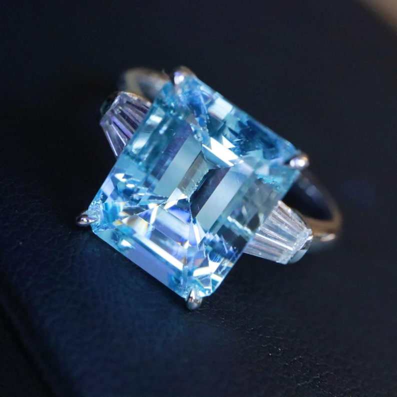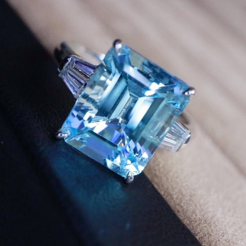แหวนอะความารีนซานตามาเรียธรรมชาติทรงสวยหรู งานแฮนด์เมดสั่งทำพิเศษ เครื่องประดับชั้นดี ของขวัญสำหรับงานหมั้นและงานแต่งงานสำหรับผู้หญิง