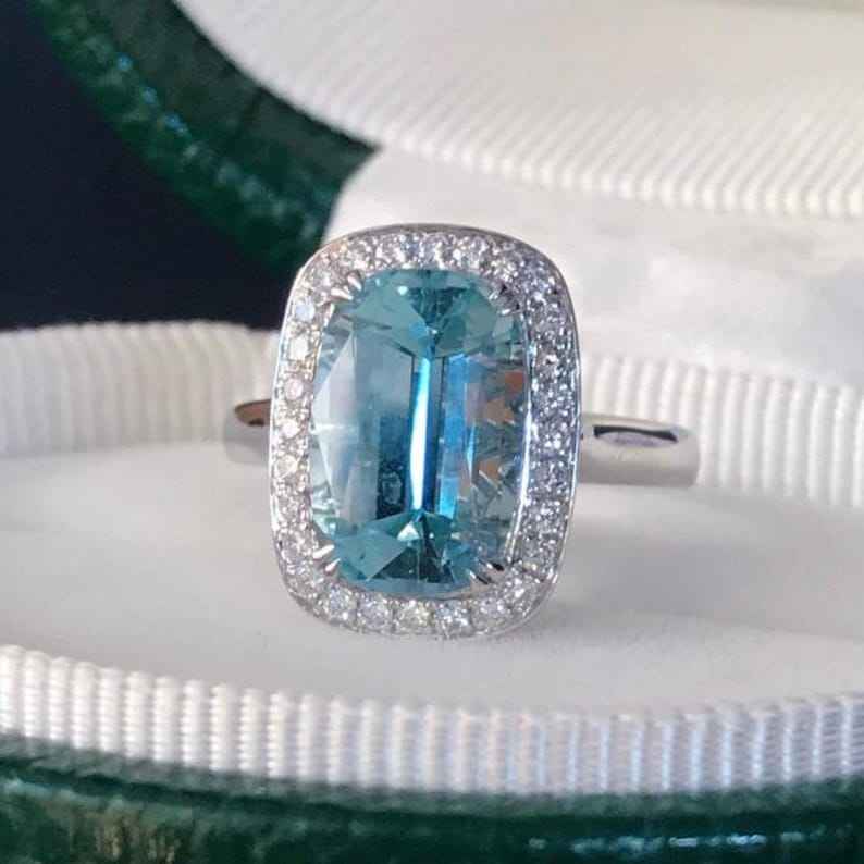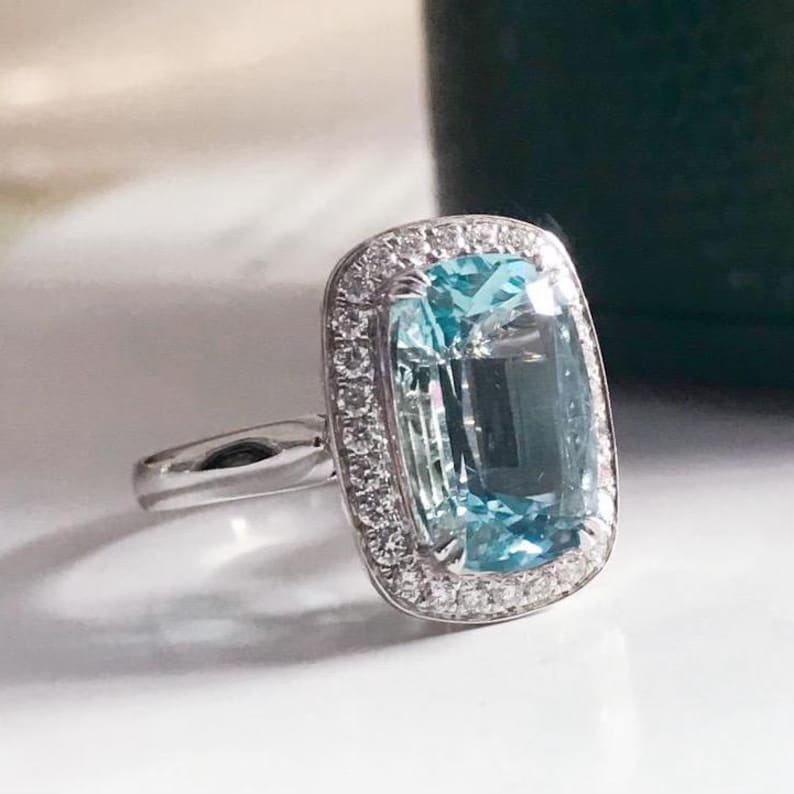 แหวนจี้อะความารีนซานต้ามาเรียธรรมชาติทรงพิเศษ งานแฮนด์เมด เครื่องประดับสั่งทำคุณภาพสูง ของขวัญสำหรับงานหมั้นและงานแต่งงาน