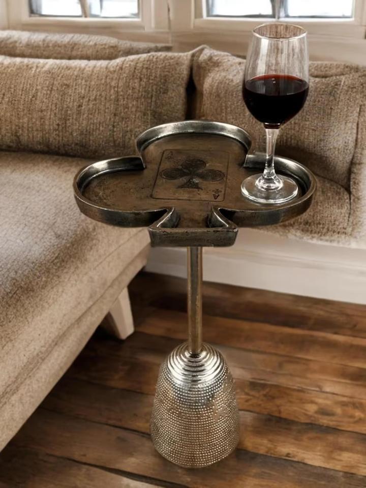 โต๊ะข้างทรงใบโคลเวอร์ ดีไซน์ศิลปะ โดดเด่นด้วยลวดลายไพ่ แข็งแรงทนทาน เหมาะสำหรับตกแต่งภายในอย่างมีสไตล์