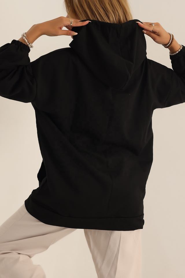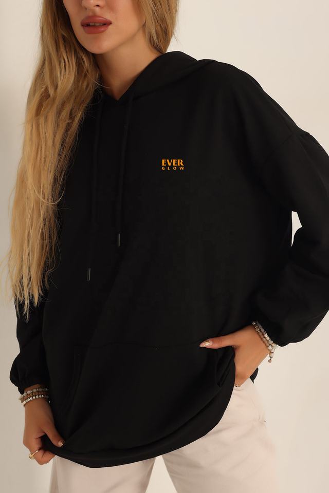 เสื้อฮู้ดแขนยาวสำหรับผู้หญิงเสื้อสวมหัวโอเวอร์ไซส์ผ้าย้อมสีต่างกันพิมพ์ลายไม่เหมือนใคร