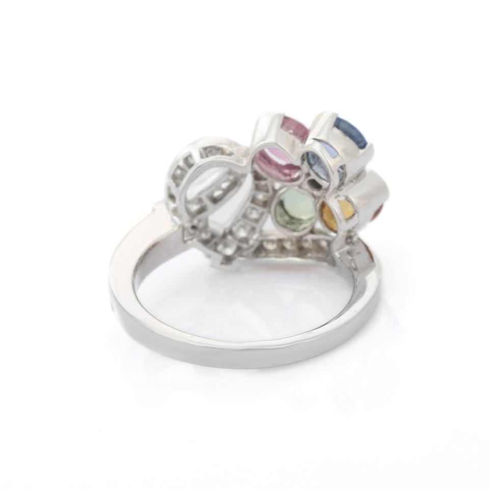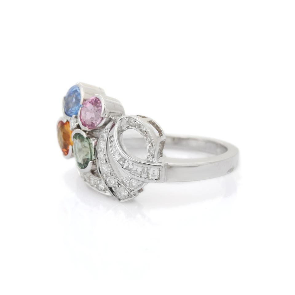 แหวนพลอยสีขาวทอง18K ที่ไม่ซ้ำใครลายดอกไม้ประดับเพชรแซฟไฟร์หลายเม็ดตามธรรมชาติสำหรับงานแต่งงานปาร์ตี้เครื่องประดับสุดอินเทรนด์สำหรับทุกเพศ