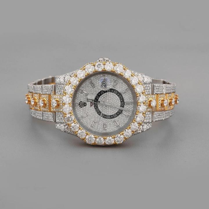 นาฬิกาควอตซ์ผู้ชายดีไซน์หรูหราโดดเด่น ประดับเพชรโมอิสซาไนต์สีทองและสีเงิน สไตล์ฮิปฮอปแฟชั่นทันสมัย