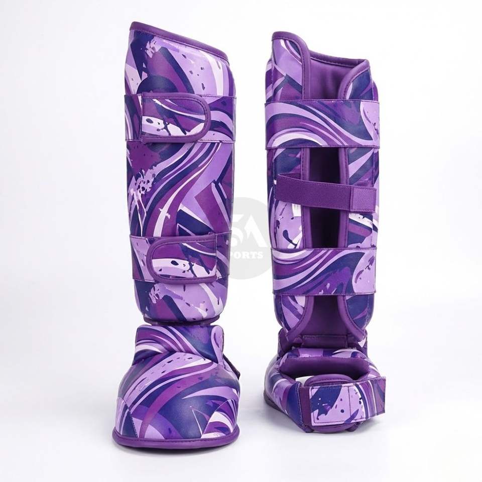 สนับแข้งหนัง PU สีม่วงแบบสามชั้น ดีไซน์ทันสมัย สำหรับมวยไทย MMA ซ้อมซ้อม ป้องกันแรงกระแทกสูง สำหรับผู้หญิง