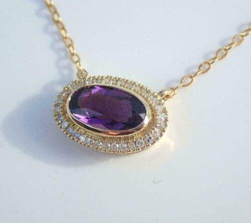 สร้อยคอเงินแท้สีม่วงรูปนกฮูกประดับเพชร ดีไซน์เรียบหรู รับรองโดย IGI ของขวัญวันเกิดสำหรับผู้หญิง