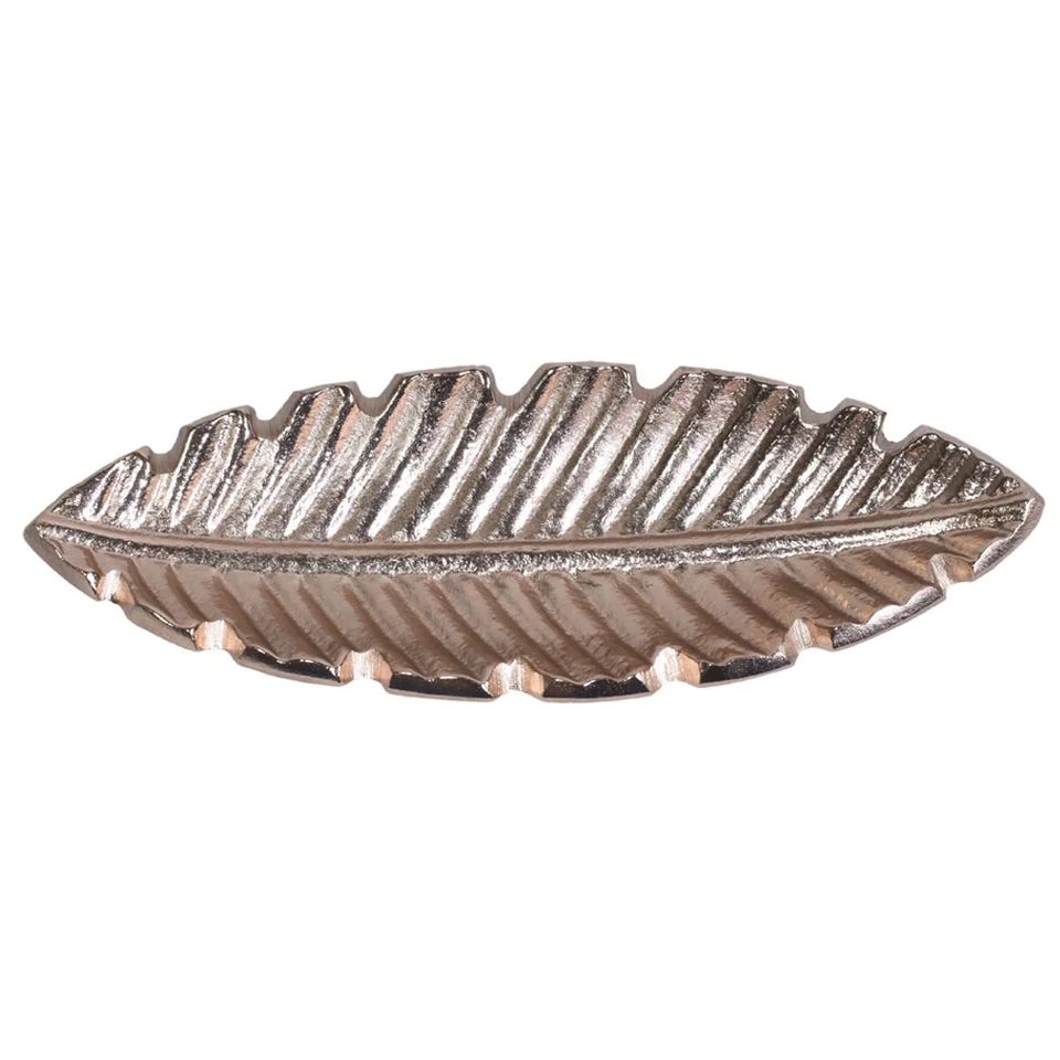 ถาดใบไม้สีเงินตกแต่ง ถาดเสิร์ฟโลหะสำหรับอาหาร ปลอดภัยสำหรับอาหาร ใช้สำหรับจัดแสดงสลัด ของหวาน จานใบไม้ ใช้ในโรงแรม ร้านอาหาร