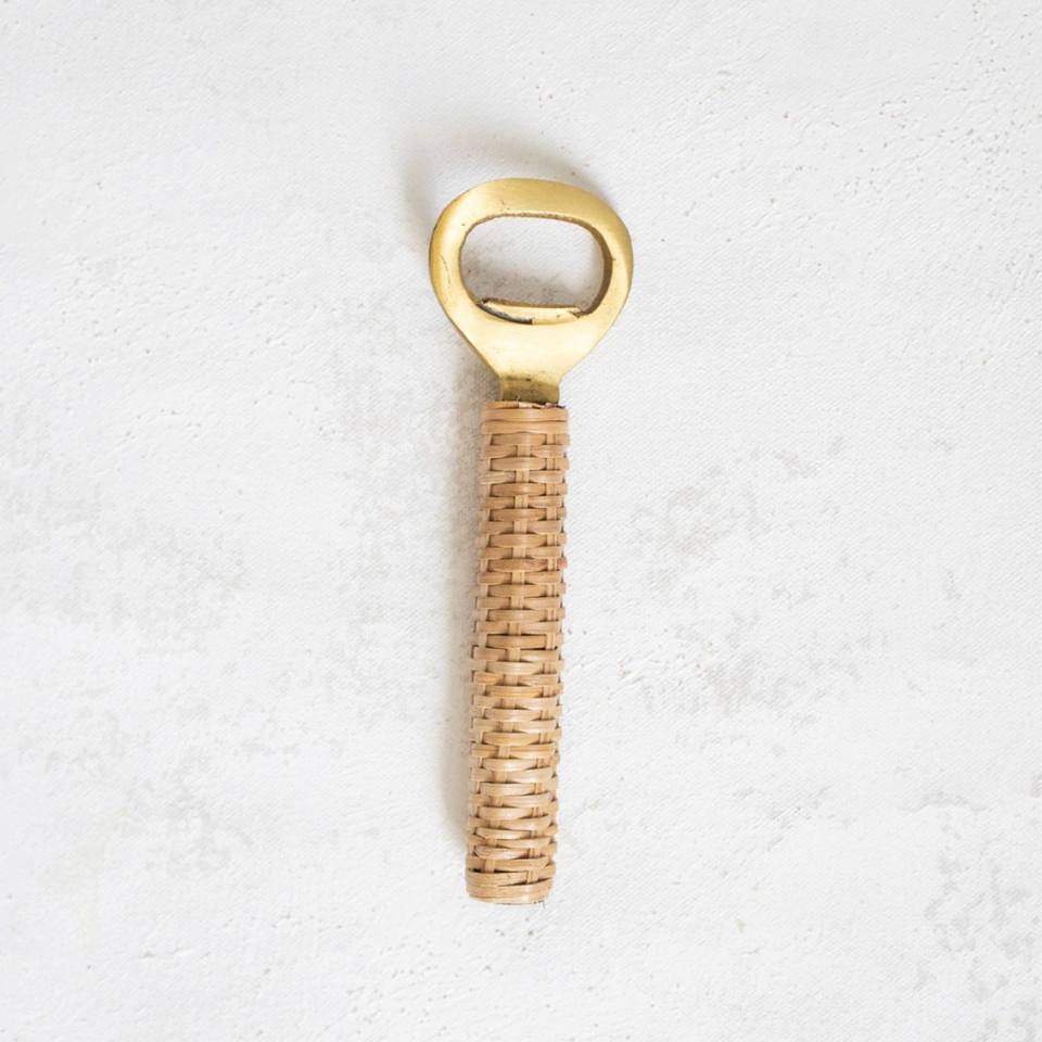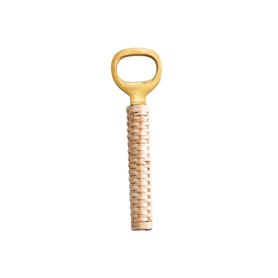 ที่เปิดขวดทำจากทองเหลืองขัดเงาสำหรับตกแต่งโต๊ะทำจากหวายและไม้