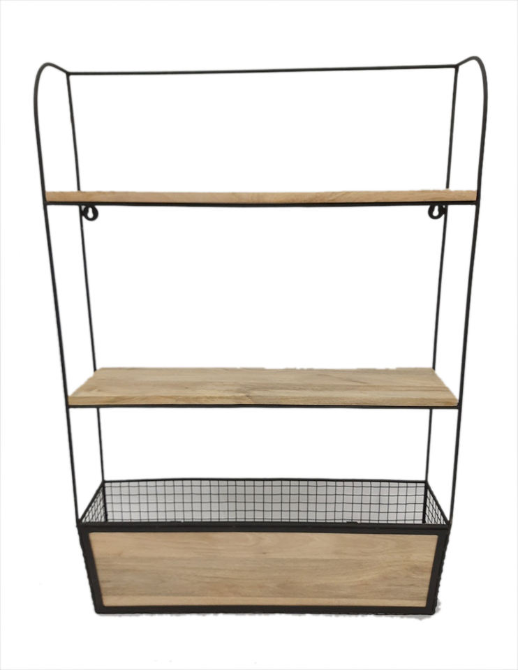 ชั้นวางของแบบเหล็กและไม้ทรงสี่เหลี่ยมผืนผ้าที่ไม่เหมือนใครชั้นวางของตกแต่งผนังสีน้ำตาลดำสำหรับงานหัตถกรรมร้านอาหาร