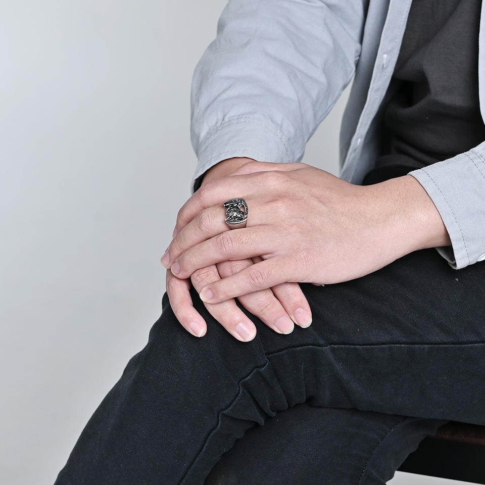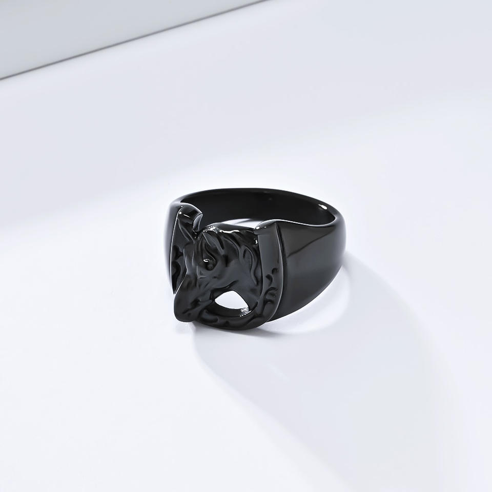 แหวนเหล็กไทเทเนียมรูปหัวม้าสไตล์เรโทรสุดพิเศษ สีทอง ดำ เงิน ของขวัญเครื่องประดับแฟชั่นสำหรับทุกเพศ