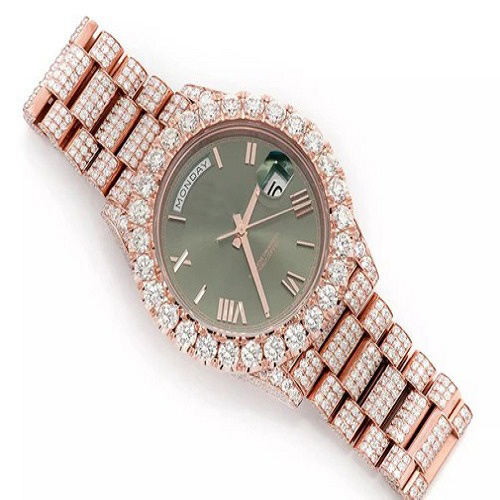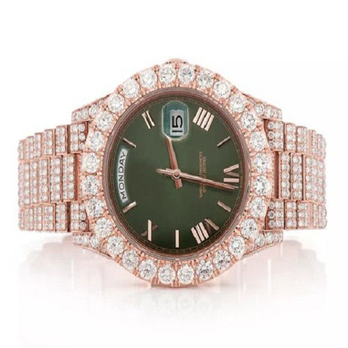 นาฬิกาสแตนเลสสตีลทรงสี่เหลี่ยมแบบกำหนดเองขายดีที่สุด หน้าปัดสีเขียวโรมันสุดพิเศษ ประดับเพชร VVS มอยส์ซาไนต์ สไตล์ฮิปฮอป ดีไซน์โบราณ หรูหรา เหมาะสำหรับธุรกิจ
