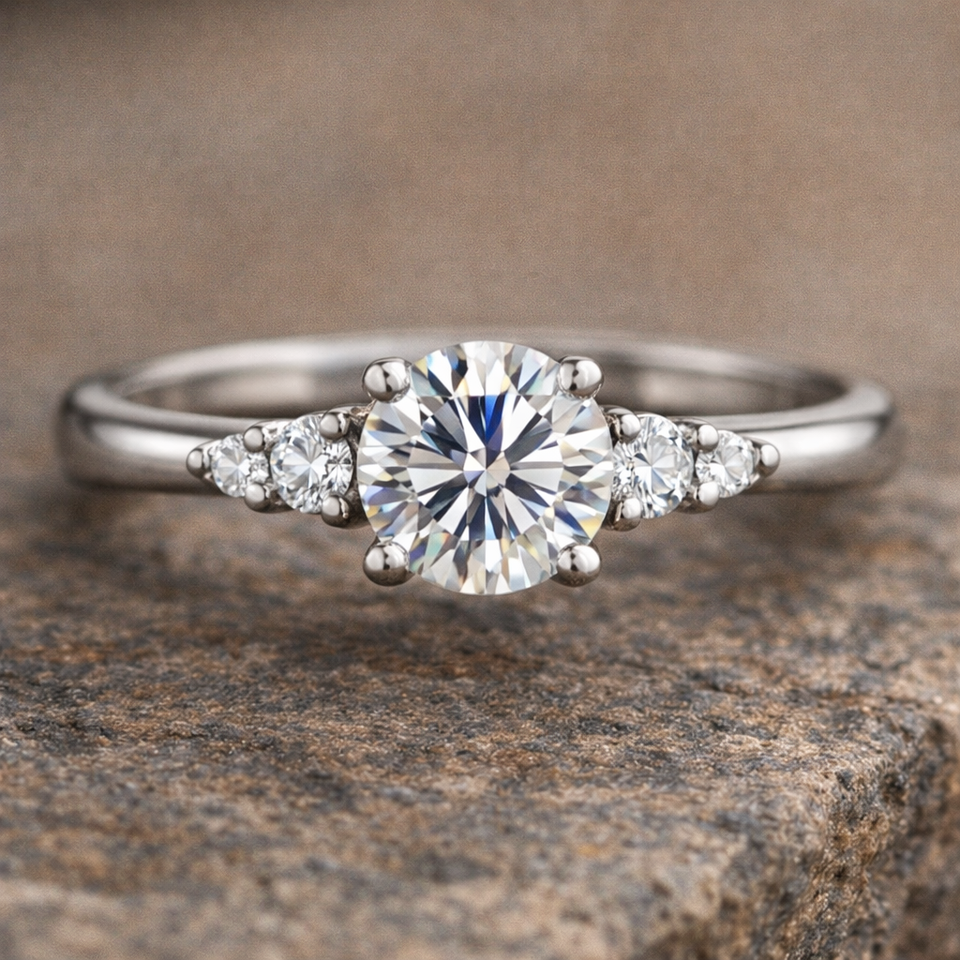แหวนพลอยมอยซาไนต์ทรงกลมที่ไม่เหมือนใครในแหวนเงินแท้ 925 ของขวัญวันครบรอบสำหรับผู้หญิง