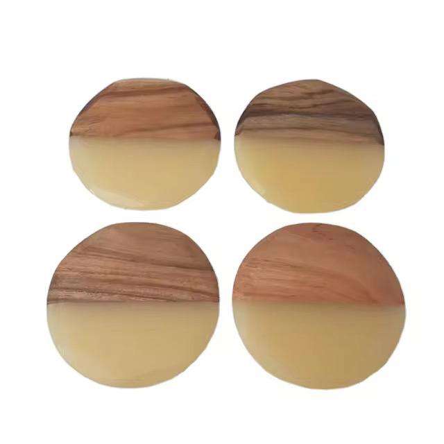 แผ่นรองถ้วยชาทำจากเรซิ่นทรงกลมและแผ่นรองแก้วไม้ดีไซน์ทันสมัยมาใหม่แผ่นรองจานบนโต๊ะอาหาร