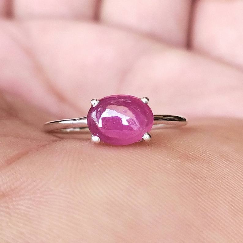 แหวนทับทิมวินเทจทำด้วยมือสีเงินแท้ไม่ซ้ำใครอัญมณีธรรมชาติเครื่องประดับที่ดีสำหรับวันเกิดขนนก