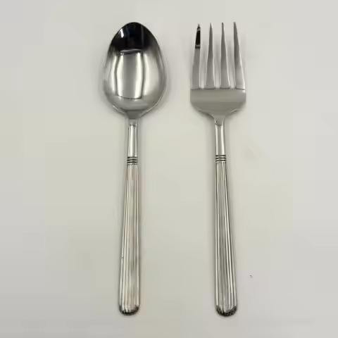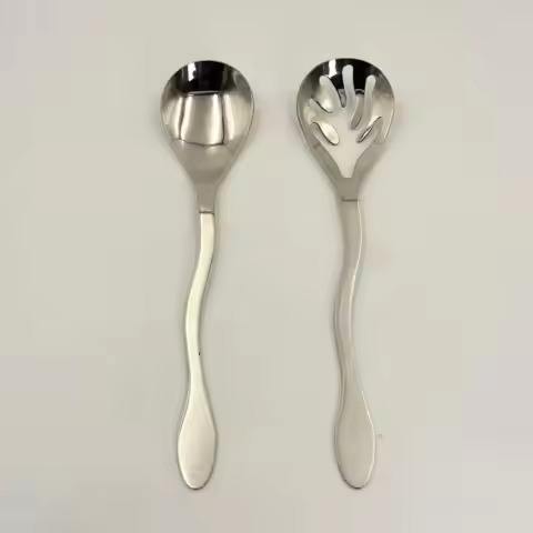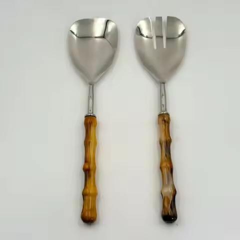 ชุดเสิร์ฟสลัดดีไซน์พิเศษ ด้ามจับเรซิ่นสีแดง สแตนเลสเคลือบทอง