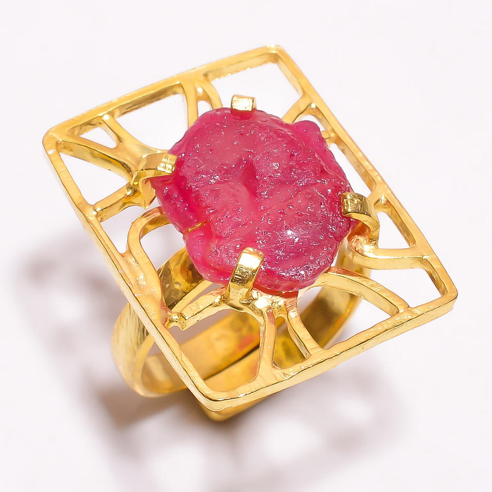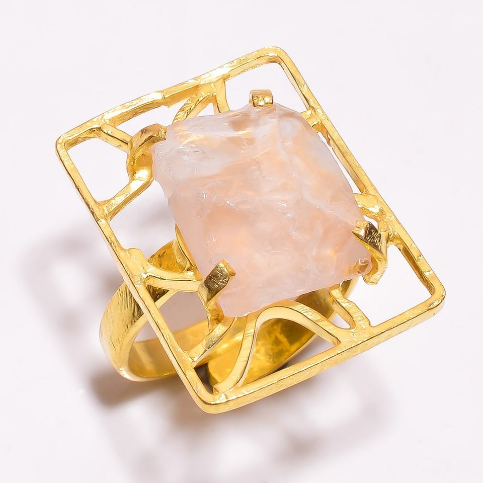 แหวนพลอยควอตซ์925เงินสเตอร์ลิงรูปทรงไม่ซ้ำใครประดับอย่างดีพร้อมฝังหนามเตยชุบทองสำหรับงานแต่งงาน