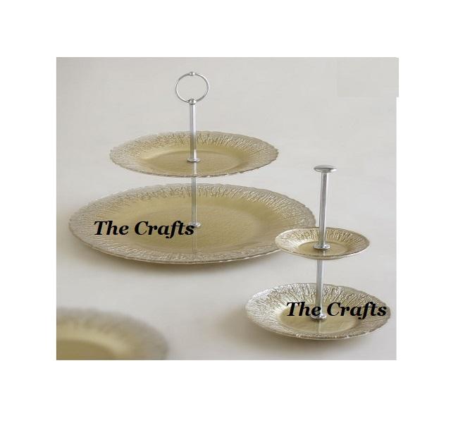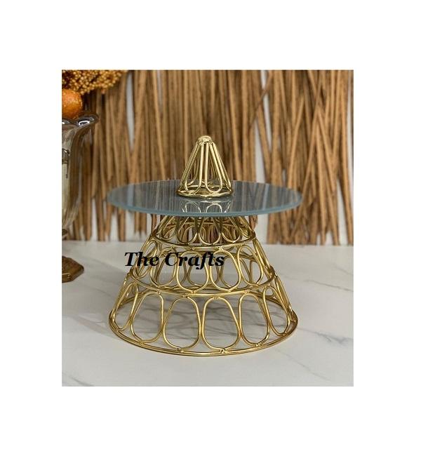 ที่วางเค้กเหล็กและแก้วสีทองใสรูปทรงกลมสำหรับตกแต่งเค้กวันเกิดและงานเลี้ยง