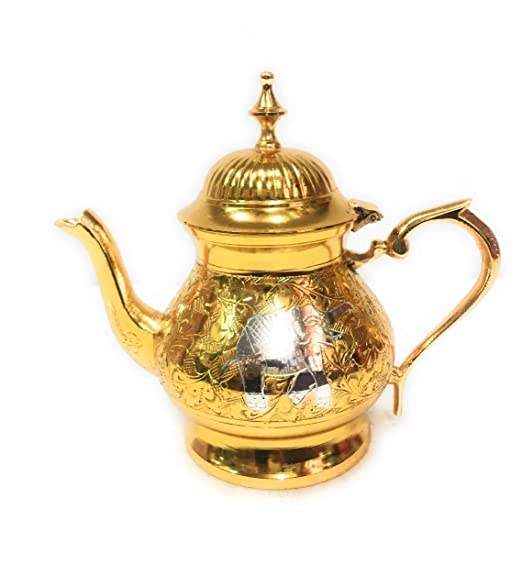 กาต้มน้ำชาสไตล์วินเทจสำหรับเสิร์ฟชา,กาน้ำชาทองเหลืองบริสุทธิ์ดีไซน์เรียบง่ายไม่เหมือนใครสไตล์อาหรับสำหรับใช้ในบ้าน