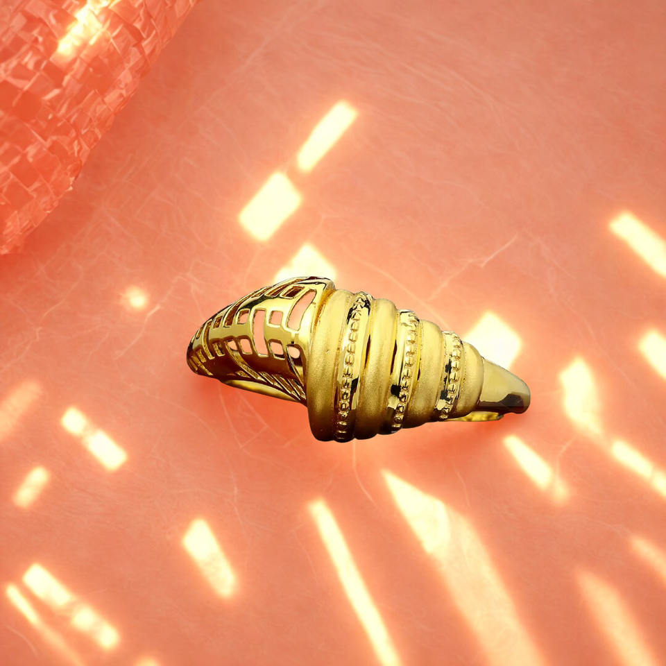แหวนทองลายเกลียวที่เป็นเอกลักษณ์ | เสื้อเชลล์ลุคแบบเว้าสำหรับผู้หญิง | ทองคำแท้สีเหลือง น้ำหนัก 2.810 กรัม ดีไซน์ทันสมัย