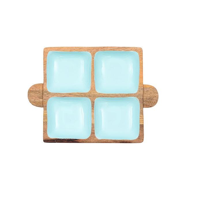 ถาดไม้สี่เหลี่ยมไม่ซ้ำใครสำหรับผลไม้แห้ง4ส่วนตกแต่งพิเศษเป็นมิตรกับสิ่งแวดล้อมขายดีผลิตภัณฑ์การตลาด