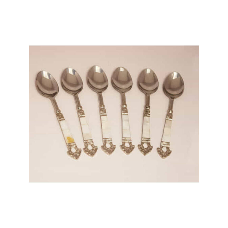 ช้อนสแตนเลสแบบแบนมีด้ามจับไม้สำหรับบ้านช้อนชาเคลือบเงา