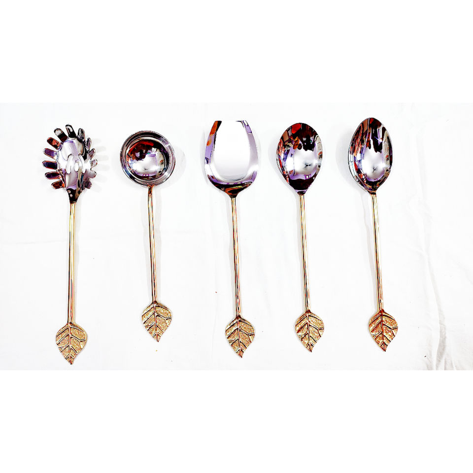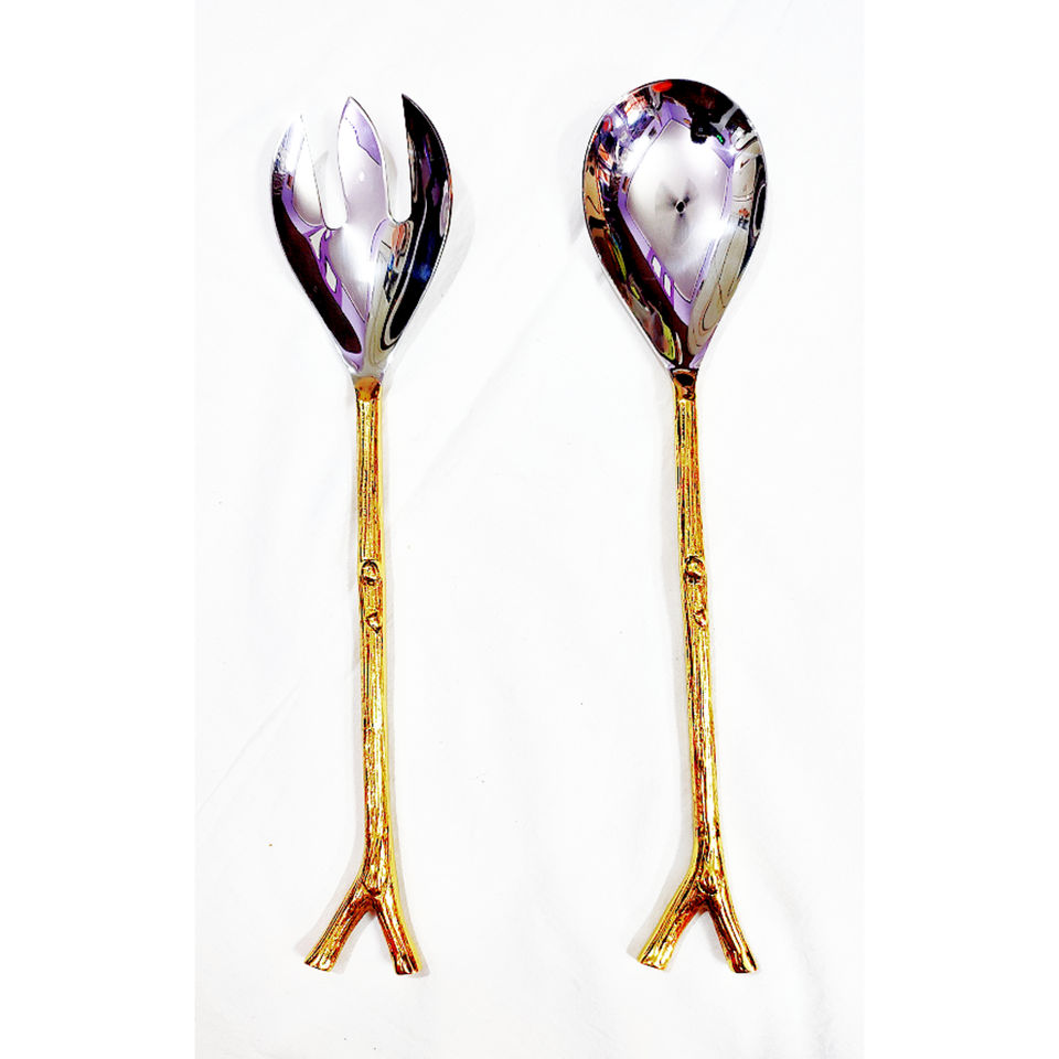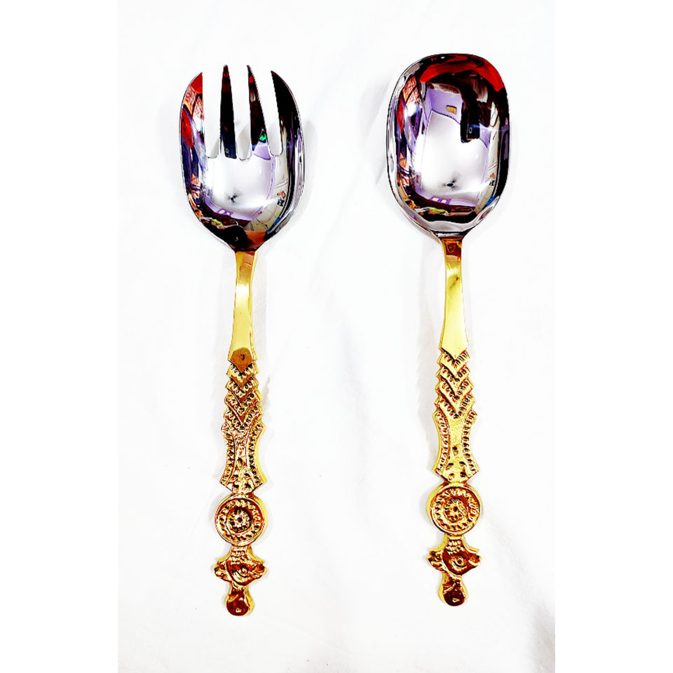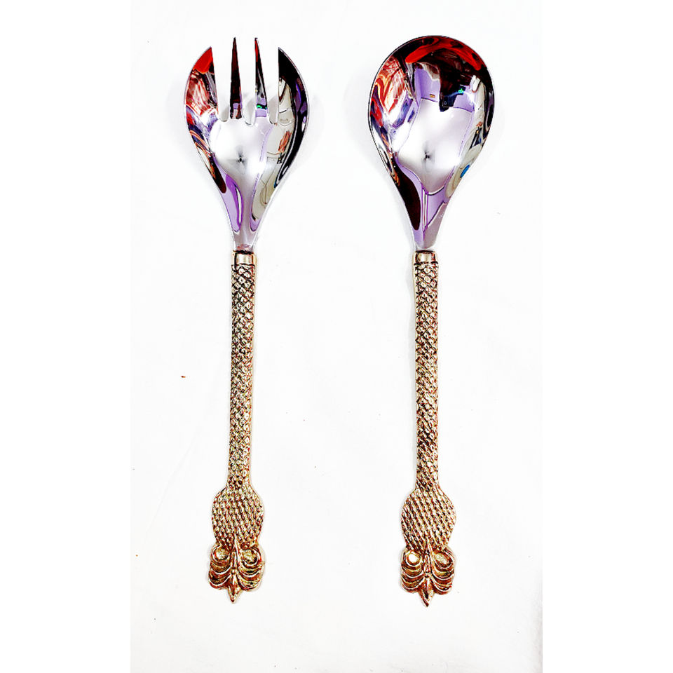 ชุดเสริฟสลัดสแตนเลสสตีลที่มีด้ามจับลายนูนสำหรับโรงแรมและร้านอาหารชุดโลหะสำหรับเสิร์ฟสลัด