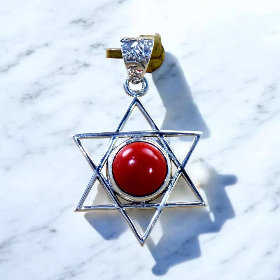 จี้และเครื่องประดับดีไซน์รูปดาวที่ไม่เหมือนใคร พร้อมพลอยออนิกซ์สีแดง จี้เงิน น้ำหนักเบา เครื่องประดับเงิน
