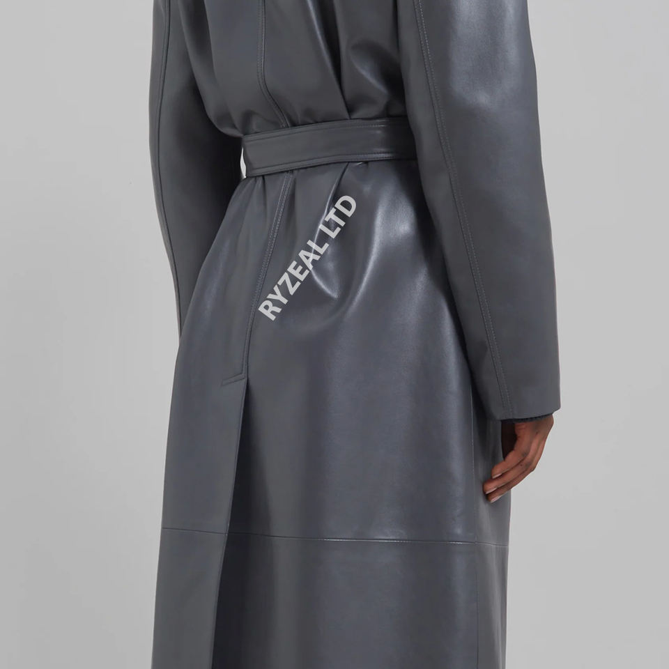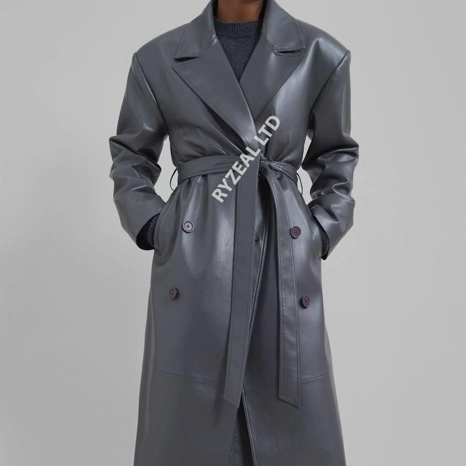 โอเวอร์โค้ทหนังเย็บอย่างมีเอกลักษณ์สำหรับผู้หญิงที่มีรายละเอียดที่ทันสมัยสำหรับสไตล์และความสะดวกสบายชุดสวมใส่กลางแจ้งอเนกประสงค์เหนือกาลเวลา