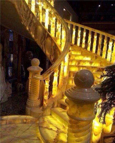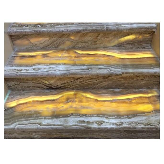 บันไดบันไดหินโอนิกซ์แบ็คไลท์สำหรับตกแต่งภายในบันไดหินอ่อนนิล