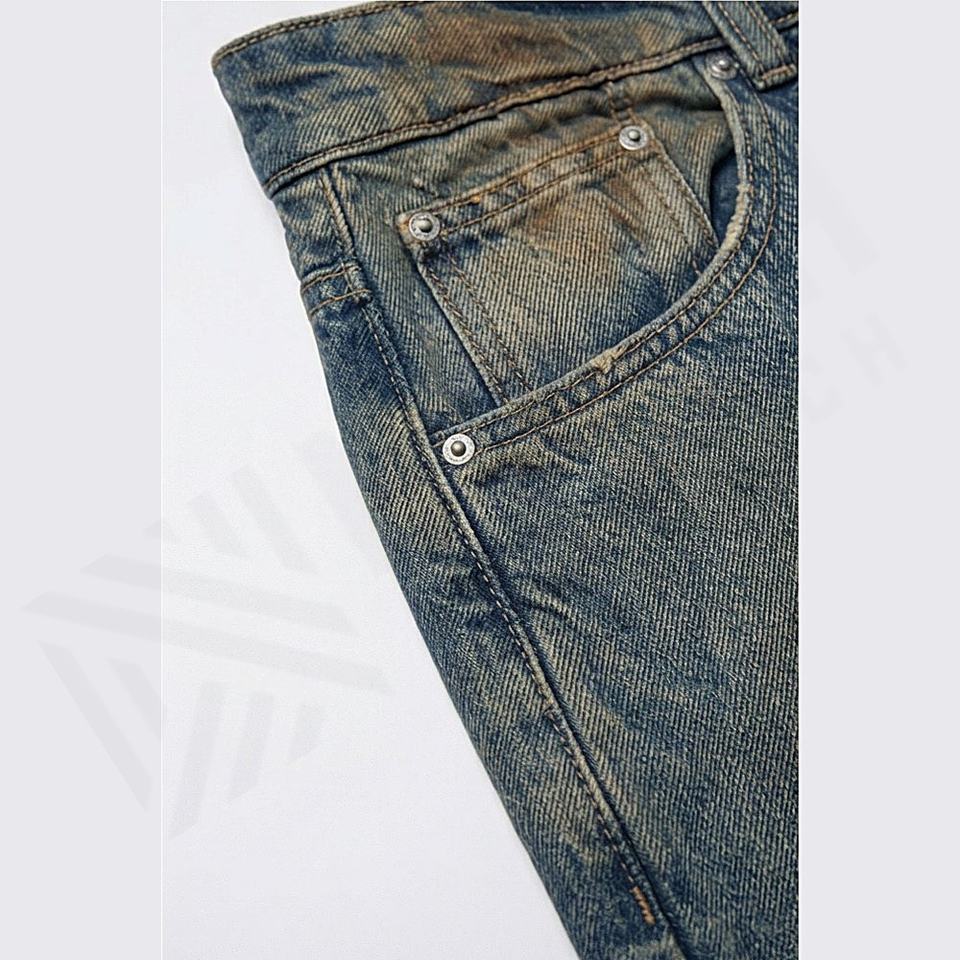 กางเกงยีนส์ผู้ชายสไตล์เฉพาะตัวสั่งทำพิเศษสำหรับขาย ออกแบบเองได้ตามต้องการ กางเกงยีนส์ขาดๆ สไตล์ดิสเทรส ขายส่ง สีตามสั่ง