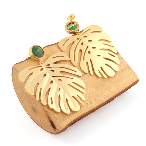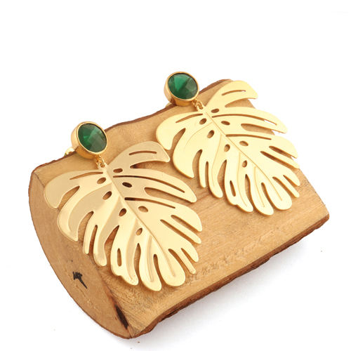 สไตล์ที่ไม่ซ้ำกันออกแบบชุบทองใบที่มีรอบสีเขียวนิลห้อยต่างหูสตั๊ดผลักดันกลับต่างหูสตั๊ดแฟชั่นผู้หญิงเครื่องประดับ